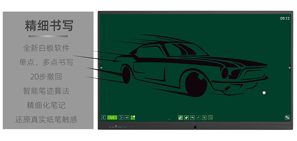 全新白板軟件,單點、多點書寫模式,20步撤回,智能筆跡算法,呈現精細化筆記,還原真實紙筆觸感。